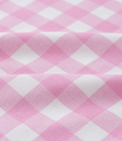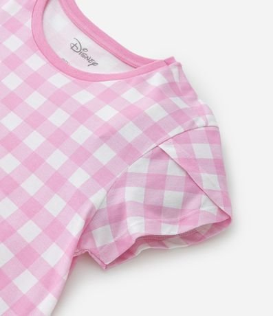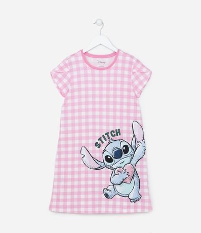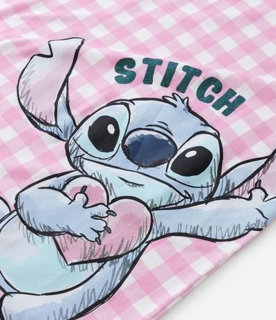 Ref: Camisola infantil com gola redonda, manga tulipa, fundo xadrez e esampa fofinha do Stitch.