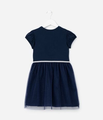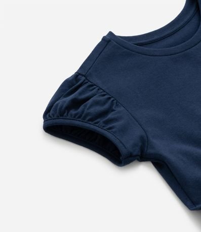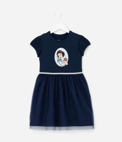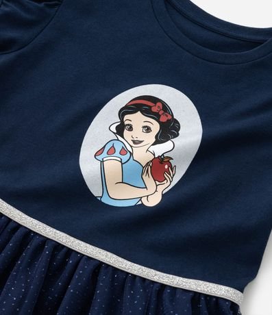 Ref: Camisola infantil com modelo de vestido com estampa da Branca de Neve, confeccionada em algodão, com golinha redonda e mangas curtas bufantes. Possui tule com glitter.