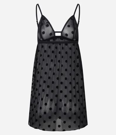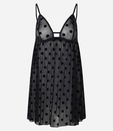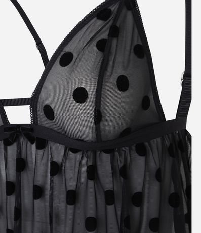 Ref: Camisola de tule com decote V e alcinhas contrastantes. A peça não tem bojo e a superfície é poá (bolinhas).