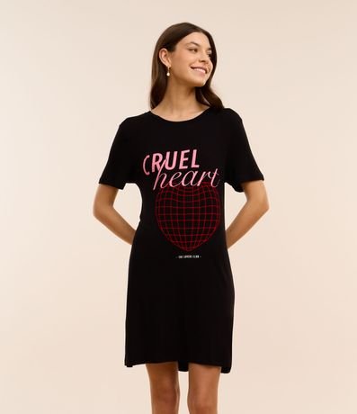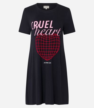 Ref: Camisola curta confeccionada em viscose mais sustentável. A peça estilo camisetão tem gola redonda, mangas curtas e estampa frontal Cruel Heart.
