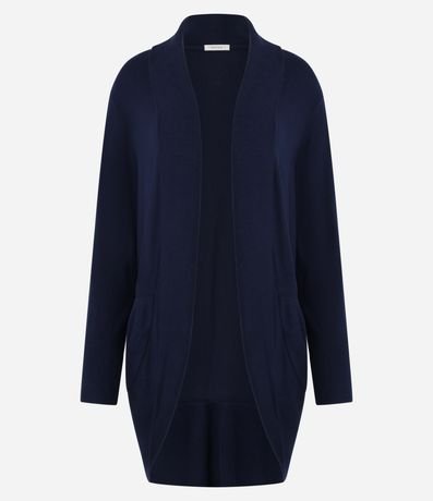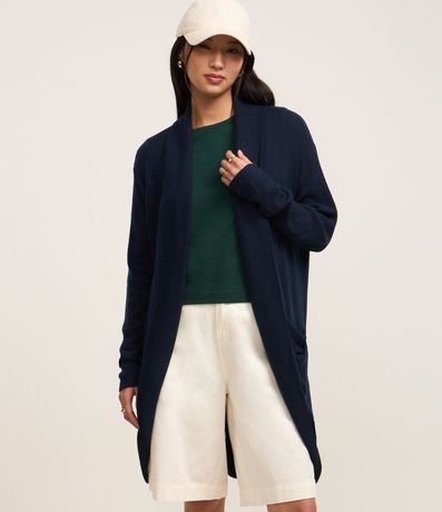 Cardigan básico de comprimento longo confeccionado em tricô pesado com viscose mais sustentável. Este agasalho conta com abertura total.