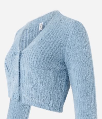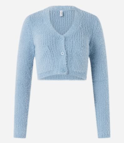 Ref: Cardigan cropped confeccionada em tricô leve, de pelinhos, com bolsinhos e abotoamento frontal.