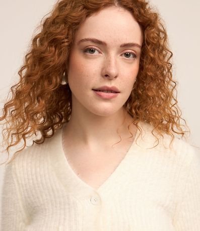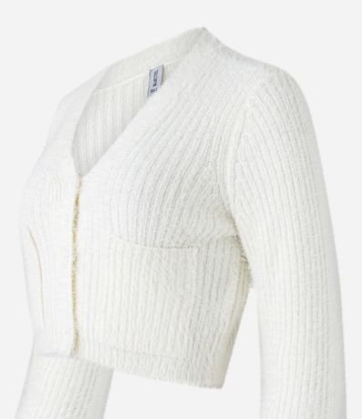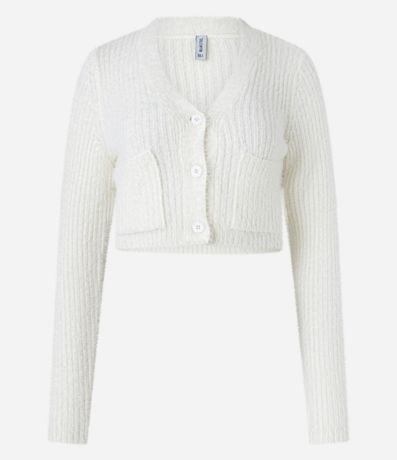 Ref: Cardigan cropped confeccionada em tricô leve, de pelinhos, com bolsinhos e abotoamento frontal.