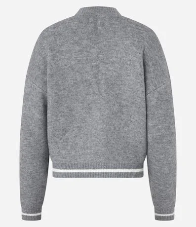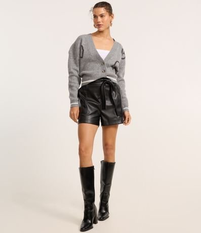 Cardigan Curto em Tricô com Botões e Estampa de Corações