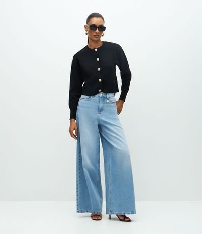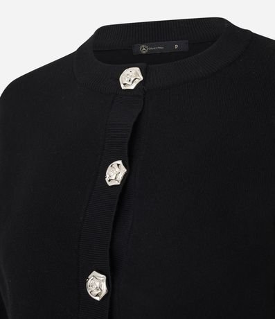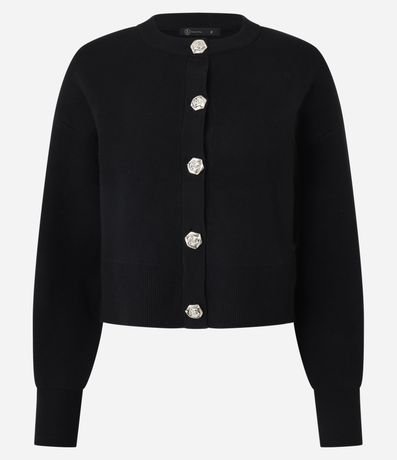 Ref: Cardigan em tricot com modelagem regular, gola redonda e acabamento retilíneo, apresentando fechamento frontal por botões florais metálicos. A peça possui mangas longas, superfície lisa e estrutura confortável, oferecendo versatilidade para compor looks casuais ou sofisticados.
