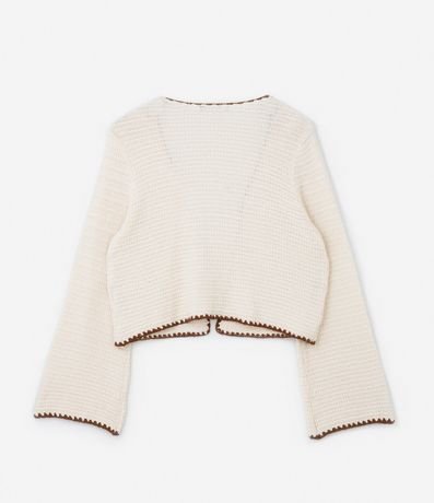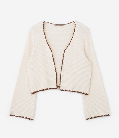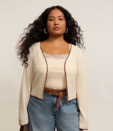 Ref: Cardigan plus size de modelo aberto, confeccionado em tricô e com detalhe de acabamento contrastante.