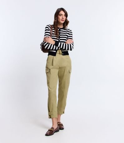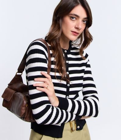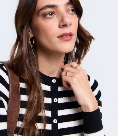 Cardigan em Tricô com Abotoamento e Estampa Listrada