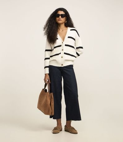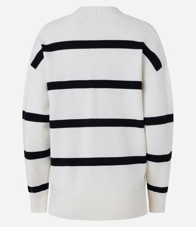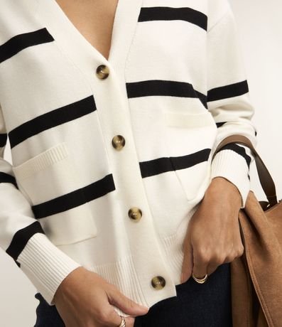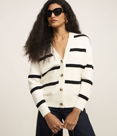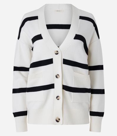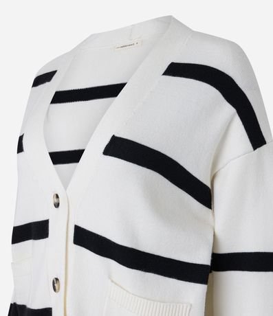 Ref: Cardigan em tricô, com decote V, abotoamento frontal, mangas longas e estampa listrada.