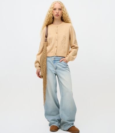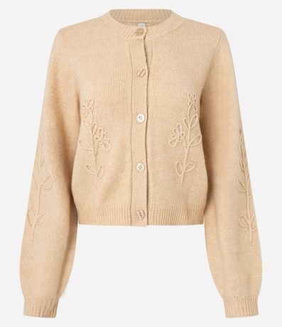 Ref: Cardigan confeccionado em tricô, echamento por botões na parte da frete, barra e punhos canelados. Possui bordado floral nas mangas e na lateral do corpo.