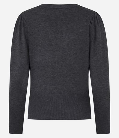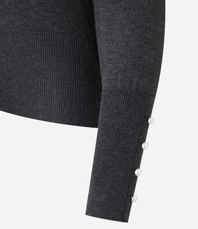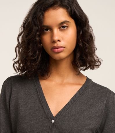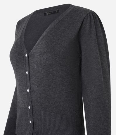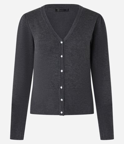 Ref: Cardigan em tricô com decote V, manga longa e botão de pérolas artificiais.