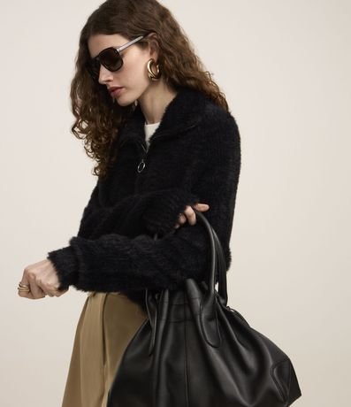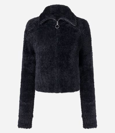 Cardigan em Tricô Peludinho com Zíper Frontal
