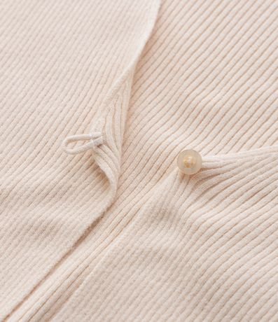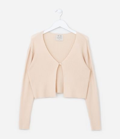 Cardigan infantil confeccionado em viscose, com textura canelada, decote V e sem estampa. Possui fechamento frontal por botão único.