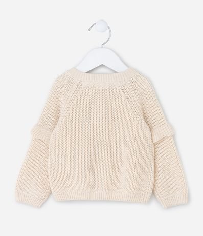 Ref: Cardigan infantil confeccionado em algodão certificado BCI, com efeito tricô pesado de toque macio e aconchegante. Possui gola redonda, mangas longas com babadinho no ombro, fechamento frontal por botões e bordados florais delicados, garantindo visual charmoso para o dia a dia.