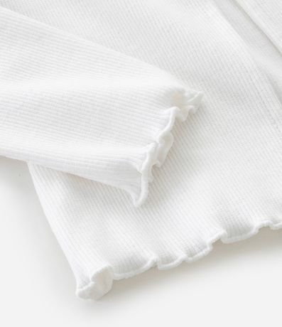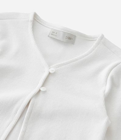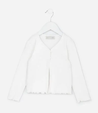 Ref: Cardigan infantil confeccionado em ribana macia com algodão certificado BCI e boas práticas ambientais. Possui gola V, mangas longas e dois botões frontais para fechamento. A superfície canelada e as barras com leve ondulação adicionam charme delicado ao visual, criando peça confortável, versátil e ideal para complementar looks de meia-estação.