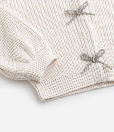 Cardigan Infantil em Tricô com Lacinhos Brilhantes - Tam 5 a 14 Anos