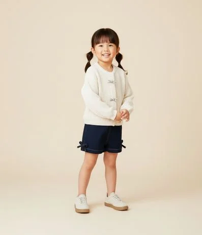 Cardigan Infantil em Tricô com Laços em Strass – Tam 1 a 5/6 Anos