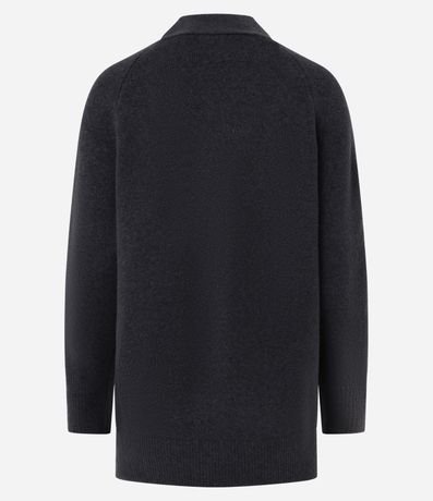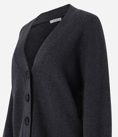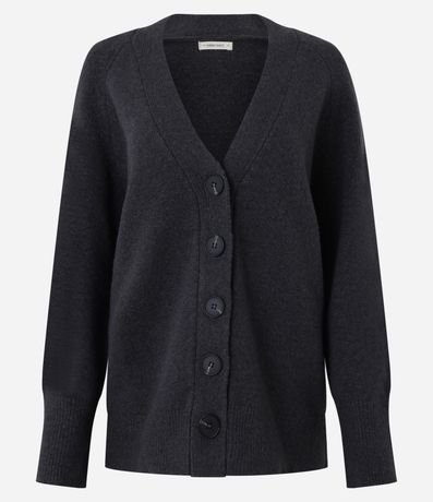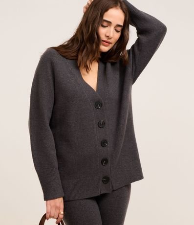 Cardigan amplo, confeccionado em tricô com 06% de lã, com abotoamento frontal. Agasalho tem botões grandes e caimento pesado.