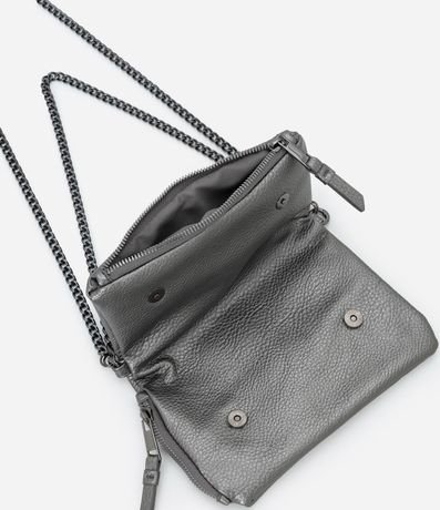 Ref: Carteira feminina tamanho grande confeccionada em material sintético. Possui modelo envelope para uso transversal com duas alças de corrente. Conta com fechamento por botão de pressão e zíper funcional.