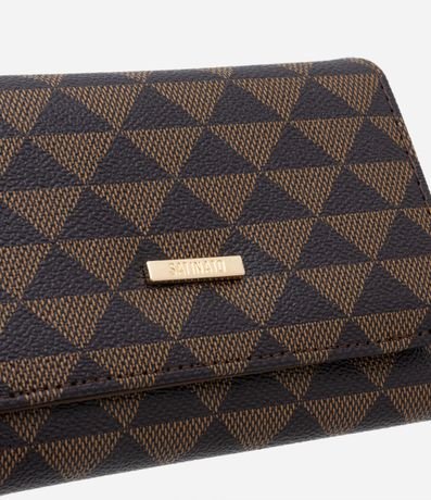 Ref: Carteira envelope feminina média, tampa com botão de pressão, divisórias internas, divisória interna com zíper e estampa de triângulos.