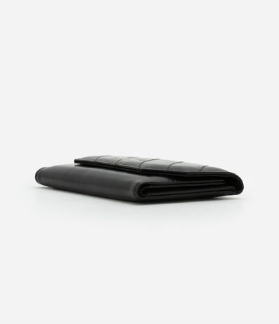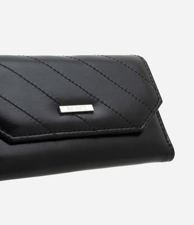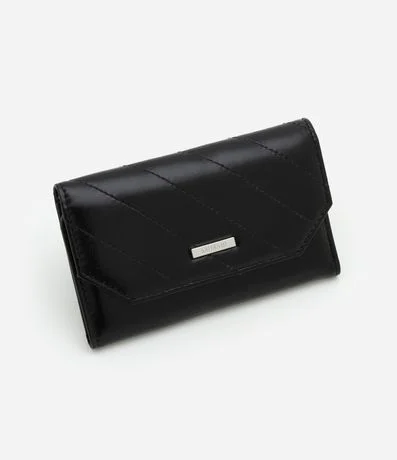 Ref: Carteira envelope, tampa com textura matelassê, plaquinha em metal aplicada, porta cartões e moedas interno, confeccionada em pu.