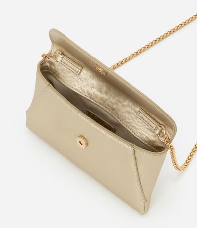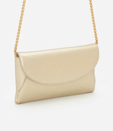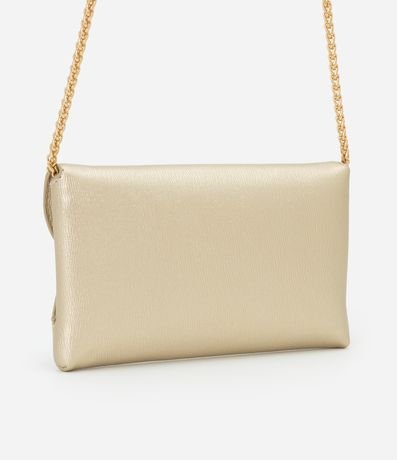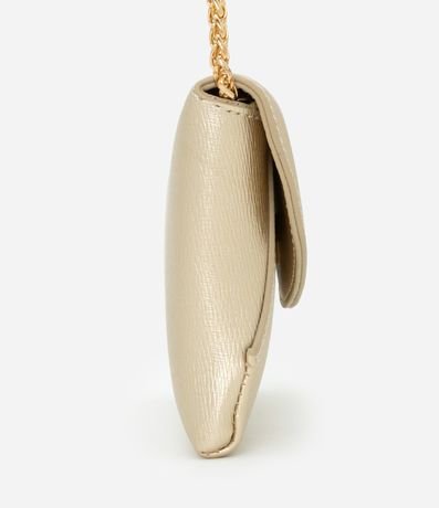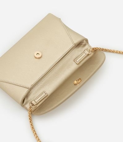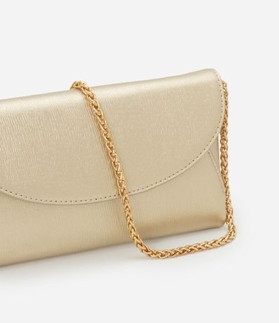 Ref: Carteira grande metalizada, com tampa, alça em corrente e fechamento por botão de imã.