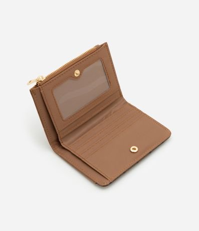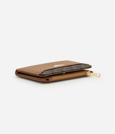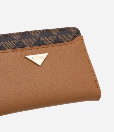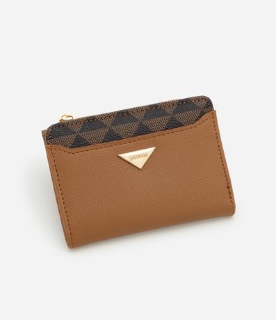 Ref: Carteira feminina pequena, confeccionada em PU, com fechamento em zíper e botão e detalhe de estampa triângulos.