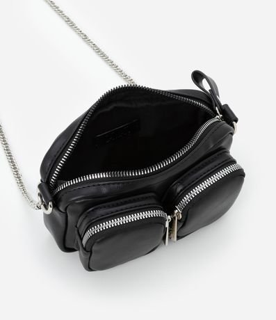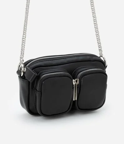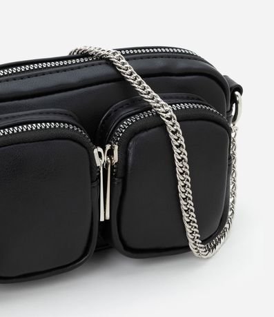 Ref: Carteira feminina confeccionada em material sintético no modelo transversal grande com bolsos frontais, fechamento por zíper a alça de corrente.
