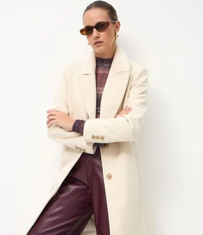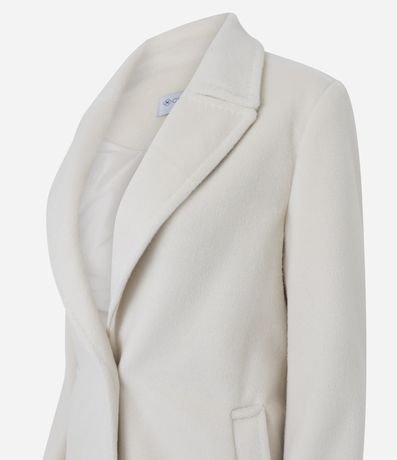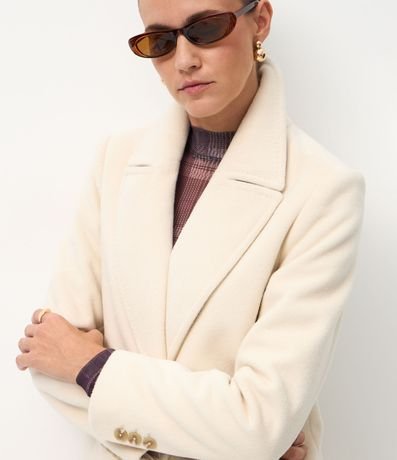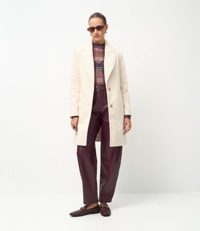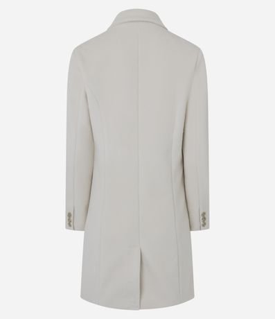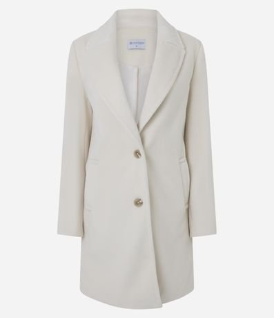 Ref: Casaco feminino de comprimento alongado. Possui fechamento com dois botões e lapela ampla, bolsos laterais embutidos e fenda traseira discreta