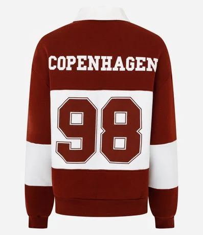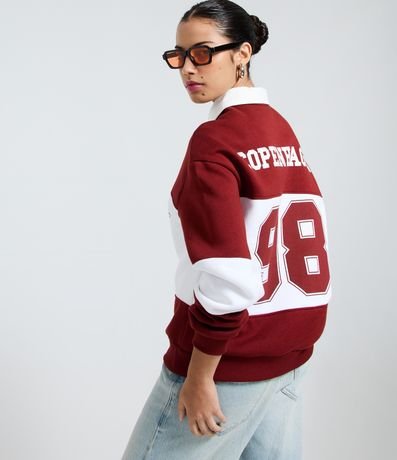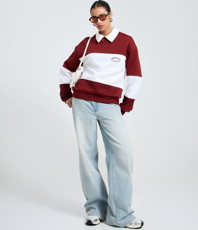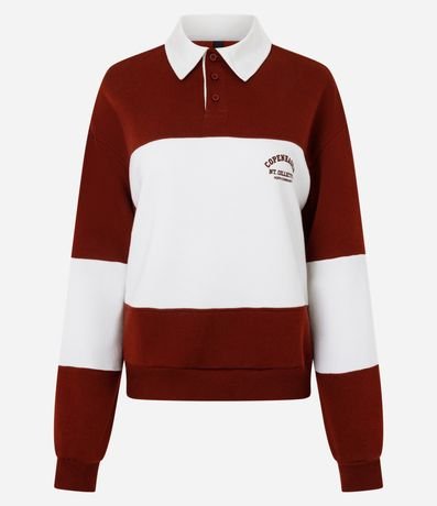 Ref: Casaco feminino fechado confeccionado em moletom mais sustentável através de boas práticas ambientais, no modelo alongado. Possui gola polo, com abotoamento, manga longa, lettering no peito e estampa de listras.