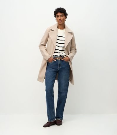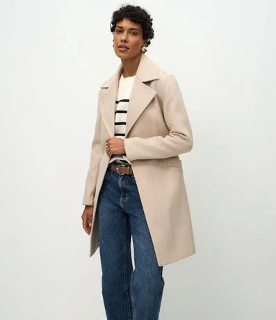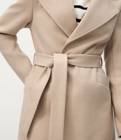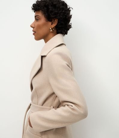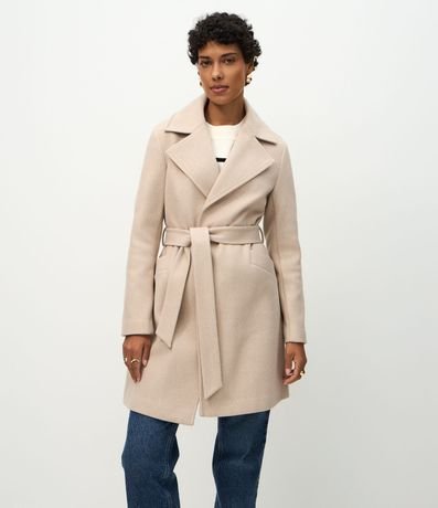 Ref: Casaco confeccionado em polivelour com lapelas na gola e transpasse frontal. Este casaco sobretudo conta com passantes nas laterais da cintura com cinto faixa de tecido.