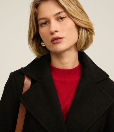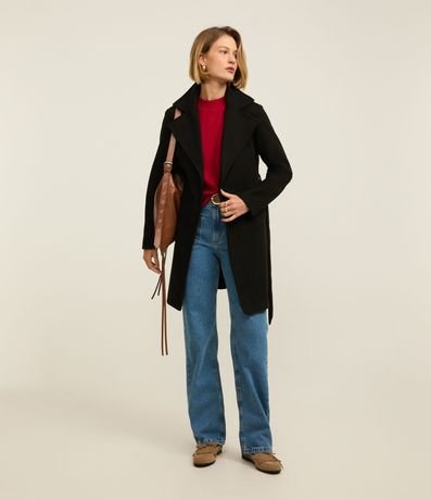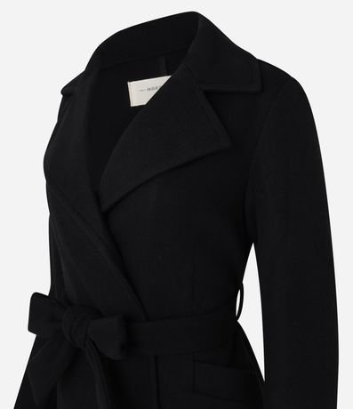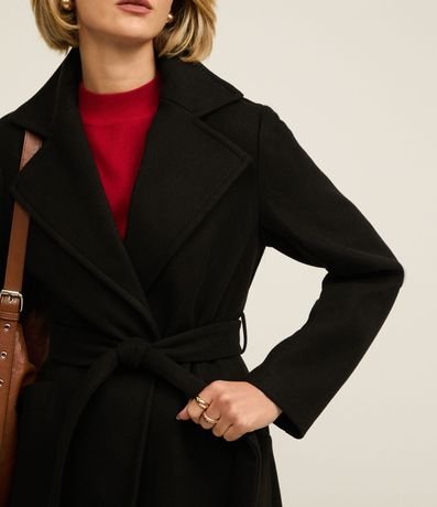 Ref: Casaco confeccionado em polivelour com lapelas na gola e transpasse frontal. Este casaco sobretudo conta com passantes nas laterais da cintura com cinto faixa de tecido.