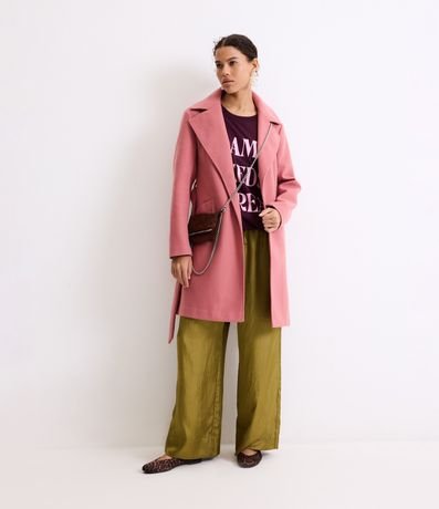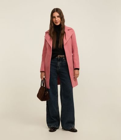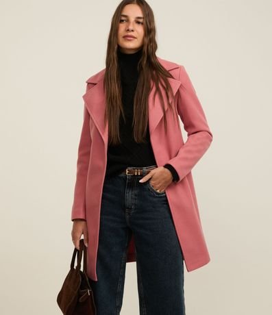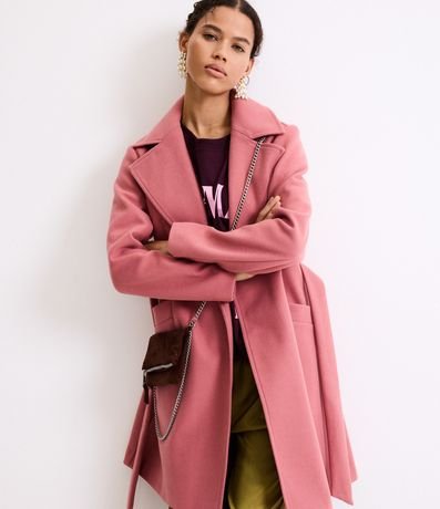 Ref: Casaco confeccionado em polivelour com lapelas na gola e transpasse frontal. Este casaco sobretudo conta com passantes nas laterais da cintura com cinto faixa de tecido.