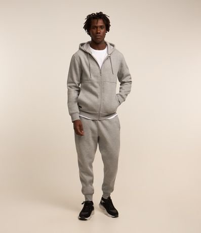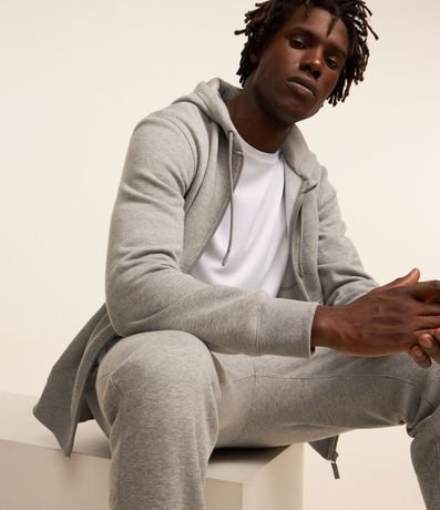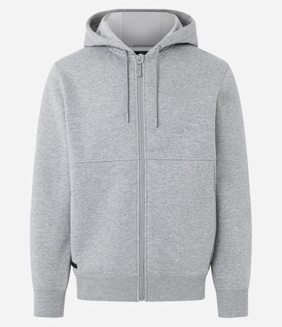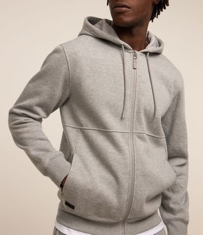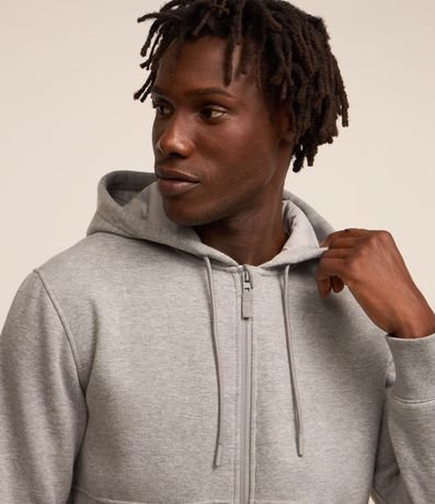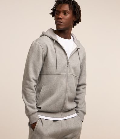 Casaco Básico em Moletom com Capuz e Zíper Frontal