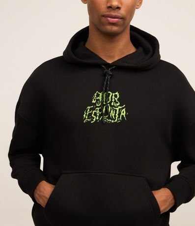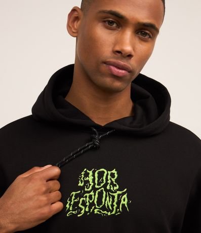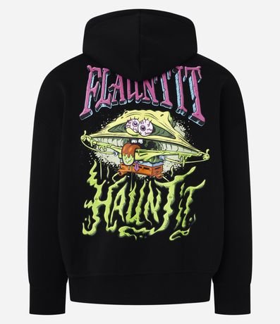 Casaco masculino confeccionado em fleece com capuz, cordão mais ajustes, manga longa ajustada. Peça no modelo boxy com estampa do personagem Bob Esponja em um design psicodélico. Esse produto foi confeccionado em produção e material mais sustentável.