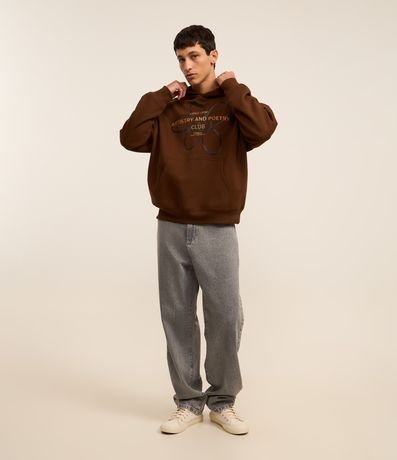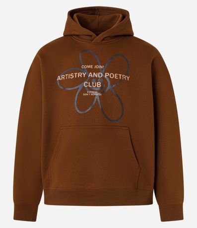 Ref: Casaco confeccionada em moletom com felpa mais sustentável, no modelo boxy. Possui capuz, bolso canguru, manga longa, punhos e cintura ajustados e estampa lettering frontal.