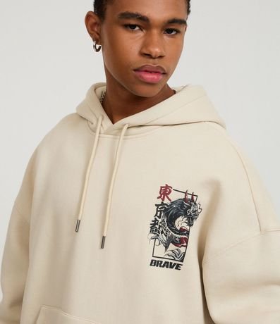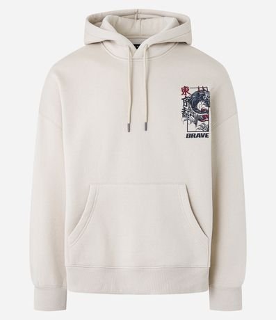 Ref: Casaco Boxy em Moletom com Felpa, estampa Brave Dragon, capuz com cordão, bolso canguru, manga longa e fit confortável.