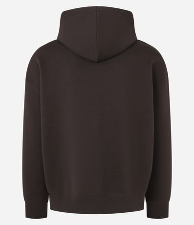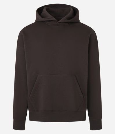 Ref: Casaco fechado masculino confeccionado em algodão mais sustentável, no modelo boxy. Possui capuz, manga longa, bolso canguru, sem estampa e barras ajustadas.