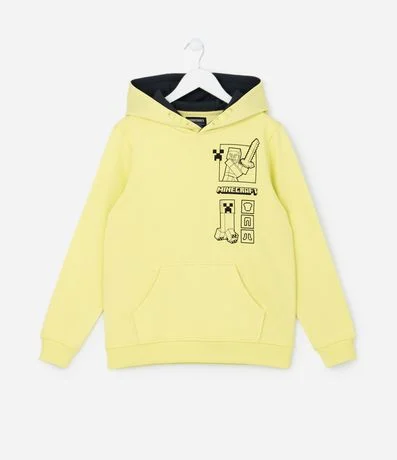 Ref: Casaco canguru infantil em moletom, gola com capuz, mangas longas e estampa divertida do Minecraft.