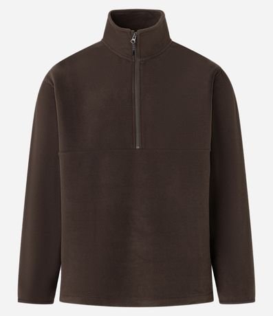 Casaco em Fleece com Gola Alta e Zíper