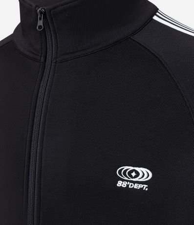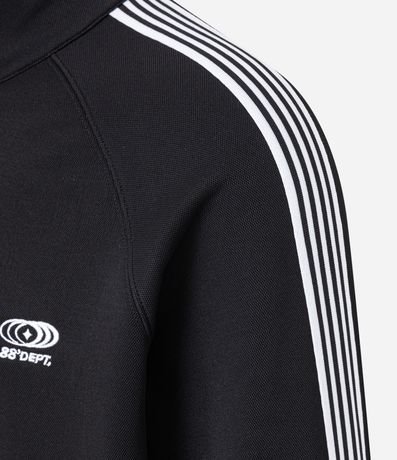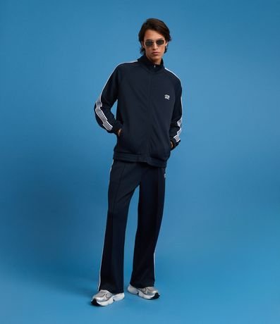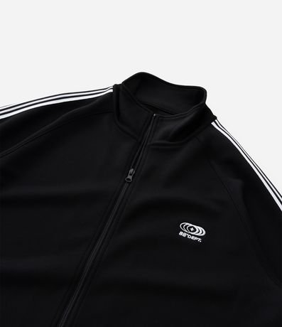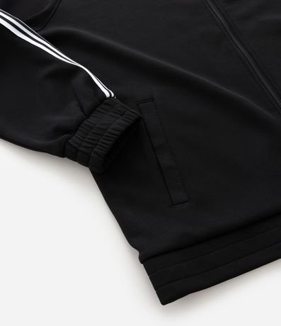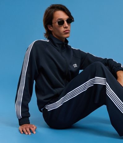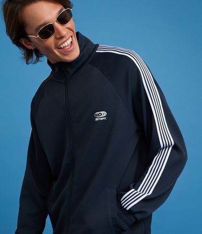 Ref: Casaco masculino em helanca com gola alta, zíper frontal, punhos ajustados, listras laterais contrastantes, bolsos e bordado. Confortável e moderno para o dia a dia.