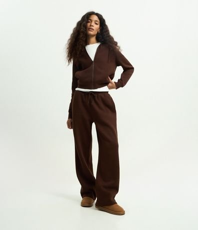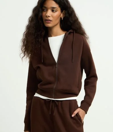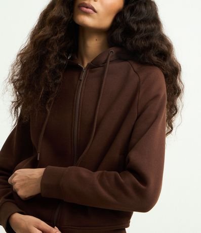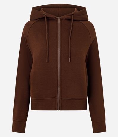 Casaco em Moletom com Capuz e Zíper Frontal