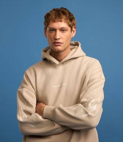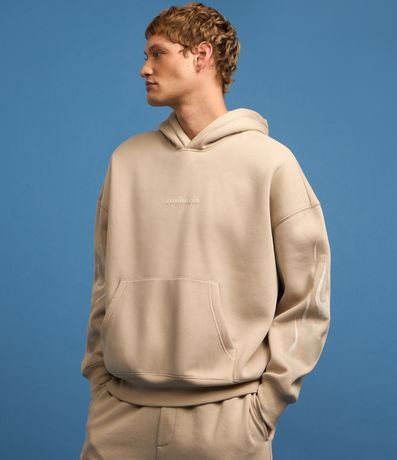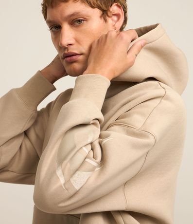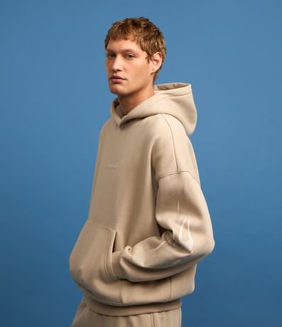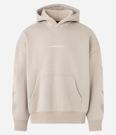 Ref: Casaco masculino confeccionado em moletom, com capuz, bolso canguru, manga longa ajustada com estampa de chamas lateral, barra ajustada e estampa lettering localizada.