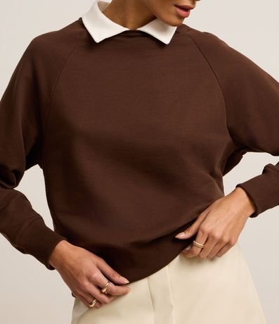 Ref: Casaco de moletom com gola de camisa e mangas longas com cavas raglan, Possui ribanas nos punhos e na barra. Este produto possui algodão certificado BCI em sua composição, além de ter sido produzido através de processos mais sustentáveis com boas práticas ambientais, sendo ambientalmente mais responsável.