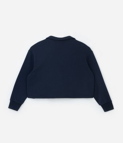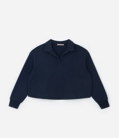 Blusa de frio confeccionada em moletom com algodão mais sustentável. A peça tem forro felpudo quentinho, mangas longas e gola polo.