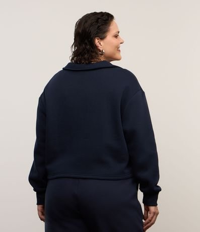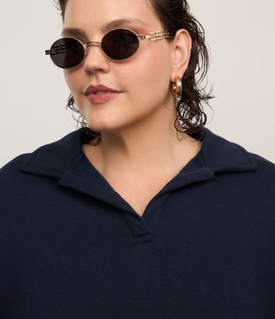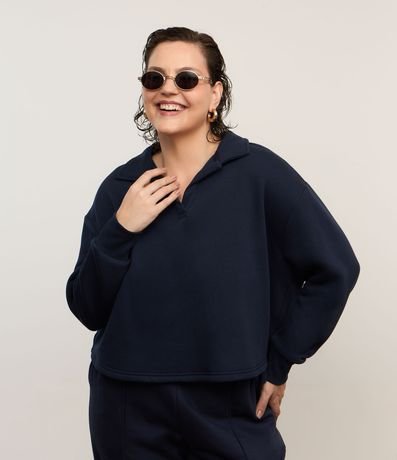 Casaco em Moletom Felpudo com Gola Polo Curve & Plus Size