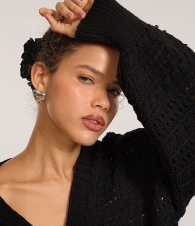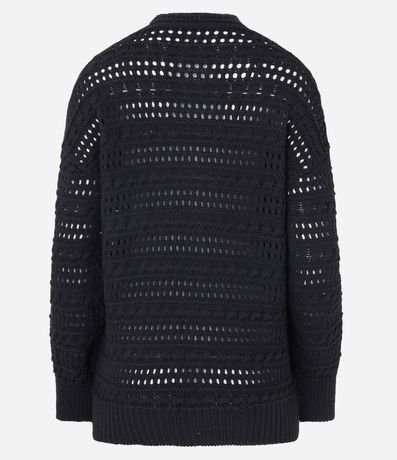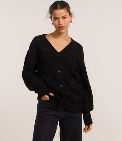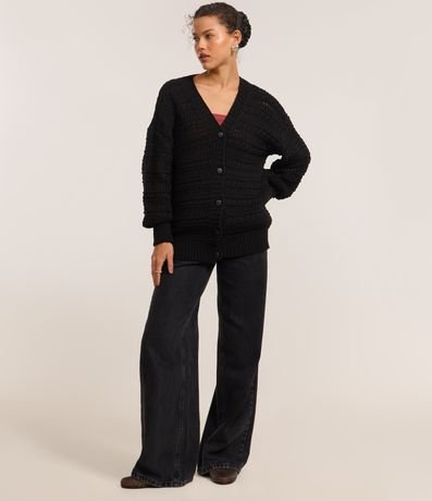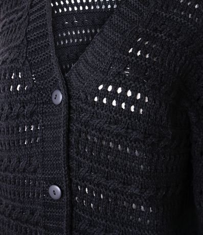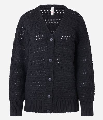 Ref: Casaco longo, confeccionado em tricô com abotoamento frontal.