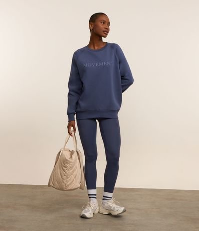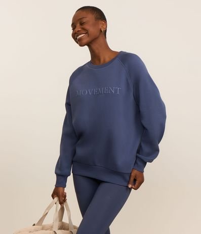 Ref: Casaco de modelo fechado, esportivo, confeccionado em em algodão, com gola redonda e cavas raglan. Possui estampa lettering frontal com a palavra "movement" e fundo liso.