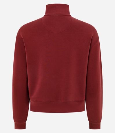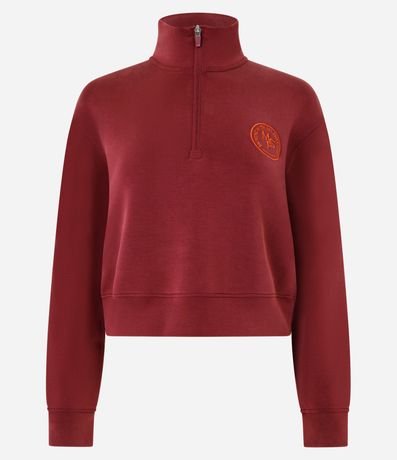 Casaco esportivo confeccionado em microfibra pesada com 47% de modal, com gola alta, manga longa e estampa localizada bordada.