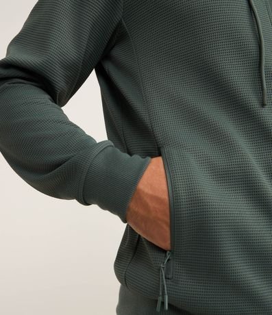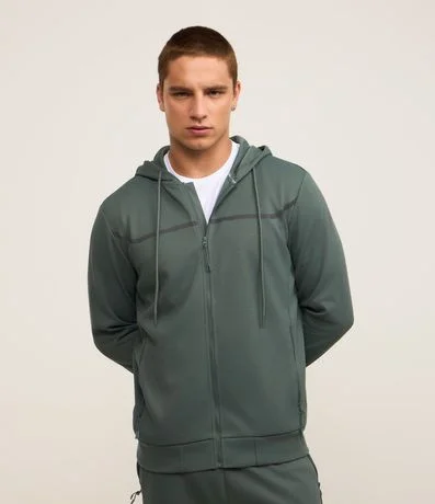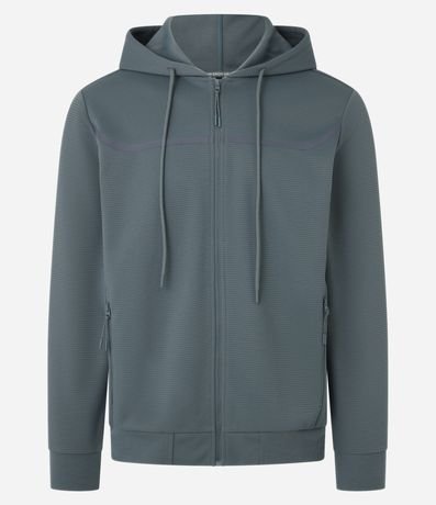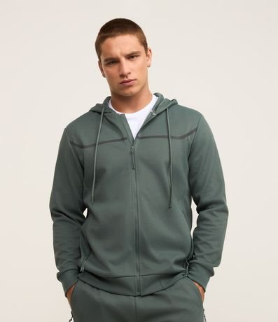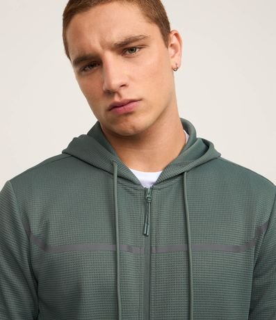 Casaco Esportivo Texturizado com Listra Refletiva e Gola com Capuz