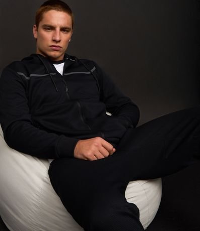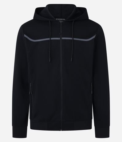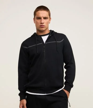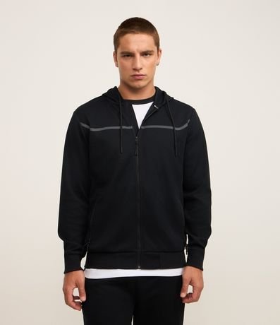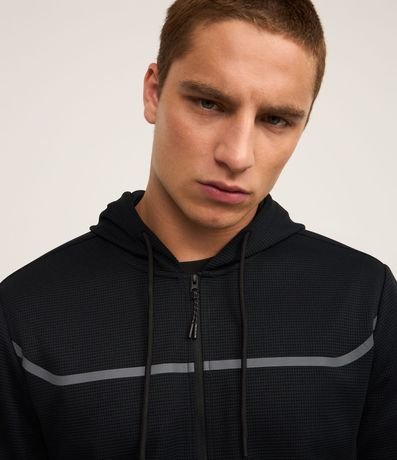 Casaco Esportivo Texturizado com Listra Refletiva e Gola com Capuz